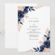 Deep navy blue watercolor roses are the centerpiece of this sophisticated design. Accents of soft peach and cream foliage create a romantic contrast against the rich indigo petals. The floral arrangement flows gracefully, offering a moody yet timeless aesthetic. Rich textures and warm neutral tones make this a perfect choice for seasonal nuptials.