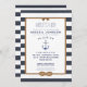 La invitación Nautical Boutique Co. a la ducha de bebé "Ahoy, es un niño" presenta un borde de cuerda infinito realista y un fondo de acabado acuarela moderno con las tradicionales franjas náuticas azul marino y blanco. La tipografía incluye unas letras en bloques clásicas que recuerdan los estilos náuticos combinados con una tipografía moderna con letras a mano. Combina el estilo clásico con el moderno. Un ancla acuarela a juego completa esta invitación al baño de bebés. #Nautical #BabyShower