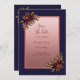 Invitación Navy Blue Rose Gold Floral wedding Save the Date