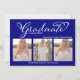 Invitación Navy Blue Script Photo Collage Graduation Card