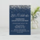 Invitación Navy Blue & Silver Glitter 50th Birthday Party