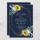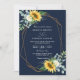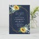 Invitación navy blue Sunflower white peony qr code wedding