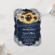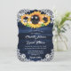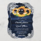 Invitación Navy Blue Sunflower Wood String Lights Wedding