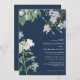 Invitación Navy blue watercolor wildflowers classic wedding