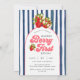 Invitación Navy Blue White Stripes Strawberry Primer cumpleañ