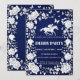 Exude timeless sophistication with this stunning invitation that channels the "Old Money" aesthetic and preppy charm of a classic equestrian estate. Set against a deep, rich navy blue background, the design is framed by an intricate, vintage-inspired white floral "Toile" or "Chintz" pattern—featuring lush roses, peonies, and foliage that evoke the feeling of a heirloom porcelain plate or a high-end fabric print.