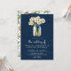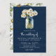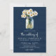 Invitación Navy Blue Wood Daisies Mason Jar QR Code Wedding