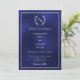 Invitación Navy blue wreath monogrammed simple wedding