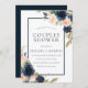 Invitación Navy & Blush Floral Elegante Ducha de Parejas