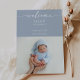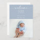Celebrate the arrival of your bundle of joy with this navy boho welcome baby photo announcement card. The design features refined handwritten typography in white on an ocean blue background , a baby photo and a clean layout, which captures the beauty of simplicity. The flowing font adds a gentle, heartfelt touch that's perfect for announcing your newborn’s name, birth date, weight, and time. This card complements any aesthetic from modern chic to classic understated elegance. Whether you’re welcoming a baby girl or baby boy, this template offers a beautiful way to introduce your newest miracle to the world.