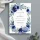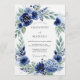 Deep navy blossoms and verdant foliage create an elegant floral wreath. This romantic design evokes a sense of classic sophistication with a rich, saturated color palette. The detailed botanical elements offer a timeless appeal for a special occasion.