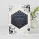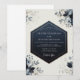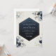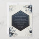 Delicate blooms in deep navy and muted blues unfurl across a soft ivory background. Subtle hints of silver and gray add an elegant touch to this romantic arrangement. This design evokes a sophisticated and serene atmosphere for a special occasion.