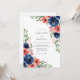 This design features a vibrant watercolor arrangement of navy blue and coral blooms with delicate green foliage. The artistic floral accents create a romantic and lively atmosphere. Perfect for a naturalistic and elegant affair.
