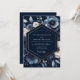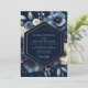 Rich navy blue hues dominate this opulent design, featuring abundant floral blooms in deep blues, whites, and subtle hints of green foliage. This artistic arrangement evokes a sense of dramatic elegance, perfect for a sophisticated union. The dense botanical elements create a luxurious and captivating visual.