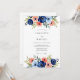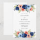 This design features a beautiful arrangement of deep blue blooms and coral accents, intertwined with lush greenery. The painterly strokes create a romantic and artistic feel, perfect for a special occasion.