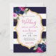 Navy and fuchsia floral Wedding invitation. No parents. Elegant. Modern.