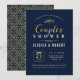 Esta elegante invitación de despedida de soltero para parejas presenta una hermosa tipografía dorada sobre un fondo azul marino. Puedes personalizar el color del fondo.