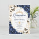 Navy, gold and white Quinceanera celebration invitation. Features, script font, gold butterflies, watercolor roses and tiara. Perfect for an elegant princess style glam celebration. Personalize with your own details. Printed Zazzle invitations or instant download digital printable template.
