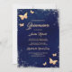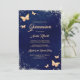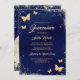 Invitación Navy Gold Sparkle Butterfly Vestido Quinceanera