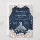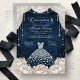 Invitación Navy White Diamond Floral Quinceanera Invitation
