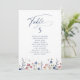 Invitación Navy Wildflower Rustic table number seating chart