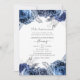 Invitación de aniversario de bodas de 25 años en azul marino y blanco con acentos de plata.