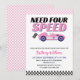 Este diseño presenta el tema de un auto de carreras rosado "Need Four Speed" para una fiesta de cumpleaños de una niña con una tarjeta de carreras tierno y un patrón de regateo rosado. Este producto se puede personalizar fácilmente. Si necesita ayuda para la personalización del producto o necesita productos a juego, póngase en contacto conmigo a través de Zazzle.