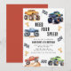 ¡Atención a los pequeños animales fiestas! Prepárate para revivir la diversión con nuestra invitación de camionetas de monstruo de cuatro velocidades! Adornado con adorables y vibrantes camiones de autos monstruosos, este moderno guión de tipografía te invita a unirte a la celebración. ¡Vayamos al cuarto año de vida con una faja épica de cumpleaños! Estas invitaciones pueden ser impresas y compartidas con sus amigos o descargadas digitalmente para una experiencia fácil de planificar por los fiestas. No te pierdas la oportunidad de pasar un buen rato en esta fiesta de cuarto cumpleaños.