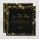 Invitación Negra de ahorro de fecha de boda pastel con brillo dorado