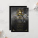 Este diseño hermoso y elegante, llamado invitación de la bola del carnaval de la mascarada Black y del oro, tiene un fondo gris y negro hermoso del bokeh. En el centro superior hay una máscara del bufón del oro. Apenas debajo de hay una frontera del oro para su texto de encargo para la gala del estilo de la bola o del carnaval de mascarada. Todos los elementos se imprimen en nuestros productos de alta calidad, ellos no incluyen ningunos elementos reales del oro, de las joyas, de la grabación en relieve, u otro de la materia textil. Todos los diseños son derechos reservados Notable Expressions, Inc. todos los derechos reservados.