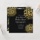 Invitación negra floral elegante moderna con lámina dorada. Esta puede ser personalizada para cualquier evento.