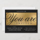Crea un negocio profesional invitaciones para tu evento con esta moderna invitación de la compañía de oro y negro. Puede editar todo el texto, agregar su logotipo y detalles del evento para crear elegantes invitaciones para su fiesta de lanzamiento, noche de gala, cena de recaudación de fondos o cualquier otro evento corporativo. El tipo de letra del guión de moda escribe 'estás invitado' y el fondo del efecto de oro falso le da un toque de lujo adicional a estas invitaciones de la empresa.