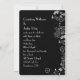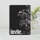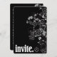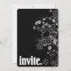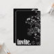Borde floral blanco contemporáneo sobre negro con letras en negrita para invitación.