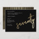 La minimalista y moderna invitación a la fiesta de cumpleaños 70 incluye elegante Relieve metalizado de oro falso número manuscrito setenta y tus detalles fiestas en el clásico tipo de letra serif con color de fondo negro, simple y elegante, gran sorpresa invitación de cumpleaños para adultos para hombres y mujeres. El color de fondo negro puede cambiarse a cualquier color que elija.