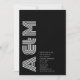 Presentando una cautivadora invitación a la boda que combina sin esfuerzo el encanto vintage con el minimalismo moderno. Esta invitación presenta un audaz y prominente monograma de las iniciales de la pareja, artísticamente diseñado con el tipo de letra "Monoton" inspirado en el retro. En un contexto de negro profundo y atemporal, el monograma ocupa el centro del escenario, evocando un sentido de sofisticación y elegancia. Con un guiño al pasado, el tipo de letra "Monoton" infunde la invitación con un toque de nostalgia, que recuerda a los clásicos estilos tipográficos que exudan un encanto eterno. El profundo tono negro de la invitación le da un aire de formalidad y lujo discreto, lo que le da un toque de elegancia. En medio del diseño minimalista, el monograma se erige como un poderoso emblema de unidad y amor. Complementado con un tipo de letra sans serif depurado y limpio, el texto restante proporciona un contraste sorprendente frente al lienzo oscuro, lo que garantiza claridad y facilidad de lectura. A medida que los huéspedes vean esta invitación, serán recibidos con una obra maestra visual que resume el viaje de la pareja. Con el monograma como pieza central, la invitación es una representación elocuente de la unión de la pareja —audaz, armoniosa y llena de promesas.