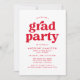Elegante fiesta de graduación invita a presentar "fiesta de grado" exhibido en negrita tipografía roja con el nombre del graduado y los detalles fiestas que se muestran a continuación. Las simples invitaciones para la fiesta de graduación son perfectas tanto para los graduados de secundaria como universitarios.