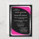 Invitaciones: Marco plateado con acentos rosados calientes sobre negro. El marco plateado es un diseño plateado, no metalizado reflexivo.