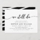 Elegante invitación para una fiesta de aniversario de boda con las palabras "We Still Do" en una escritura cursiva relajada en negro sobre un fondo blanco que es perfecto para celebrar cualquier número de años. La tarjeta tiene un reverso negro con líneas blancas superpuestas.