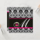 Invitación NEGRO BLANCO ROSA FUCHSIA DAMASCO MONOGRAMA Amatis