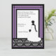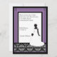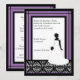 Una mezcla de damasco del vintage y de esquema de color moderno intrépido viene junta en esta invitación nupcial elegante de la ducha. La púrpura negra y del "bellflower" confina un modelo blanco y negro original del damasco con una silueta de una novia en su vestido de boda, con el ramo. La fraseología de la muestra se ha añadido pero se puede modificar para requisitos particulares fácilmente vía las cajas de la plantilla.