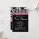 Elegante fondo negro con acento fucsia de fucsia rosa caliente, con un patrón damasco blanco y negro. Atractivo húmedo fresco, limpio y elegante, y tira de acento horizontal de colores. Personalizar en línea con los detalles de la ducha para bebé de su chica.