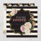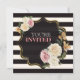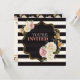 Invitación Negro cuadrado, rayas de marfil, ducha de novia fl