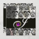 INVITACIÓN NEGRO DAMASCO DE SEDA PLATEADA MONOGRAMA PÚRPURA A