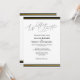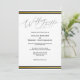 Elegante Negro con Invitación a la Boda de Oro diseñado con clásico negro sobre blanco con elegantes acentos de color dorado. El texto principal incluye: Invitación a la boda; los nombres de la novia y del novio, fecha de Boda, ubicación y detalles de la recepción. El texto inverso incluye: los detalles de su RSVP sobre un fondo blanco con elegantes acentos en negro y oro. Para personalizar, simplemente inserte sus detalles en nuestra plantilla sencilla, reemplazando el texto de ejemplo. Asegúrese de ver toda la colección de Bodas Elegant Black With Gold para tarjetas y accesorios a juego.