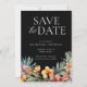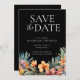 Invitación Negro floral tropical salva la fecha