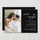 Minimalista negro Invitación a la fiesta de compromiso de fotos Nos involucramos Añadir texto personalizado a la parte posterior para proporcionar cualquier información adicional necesaria para sus invitados.
