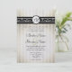 Sencillo Vintage de color negro y beige Neutral Elegante Banner de corte floral negro en la parte superior para invitaciones de boda monograma