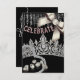 Invitación Negro y plata con diamantes de corona, fiesta rosa