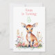Un pequeño y dulce ciervo rodeado de flores rosadas acuarela ilustracion invitaciones para fiestas de cumpleaños para una niña pequeña.