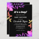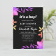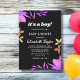 Esta elegante ducha de flores es perfecta para una moderna ducha de bebé de verano. El diseño es sencillo y cuenta con un bonito rosa de neón brillante con una elegante caligrafía blanca sobre un fondo negro negrita.